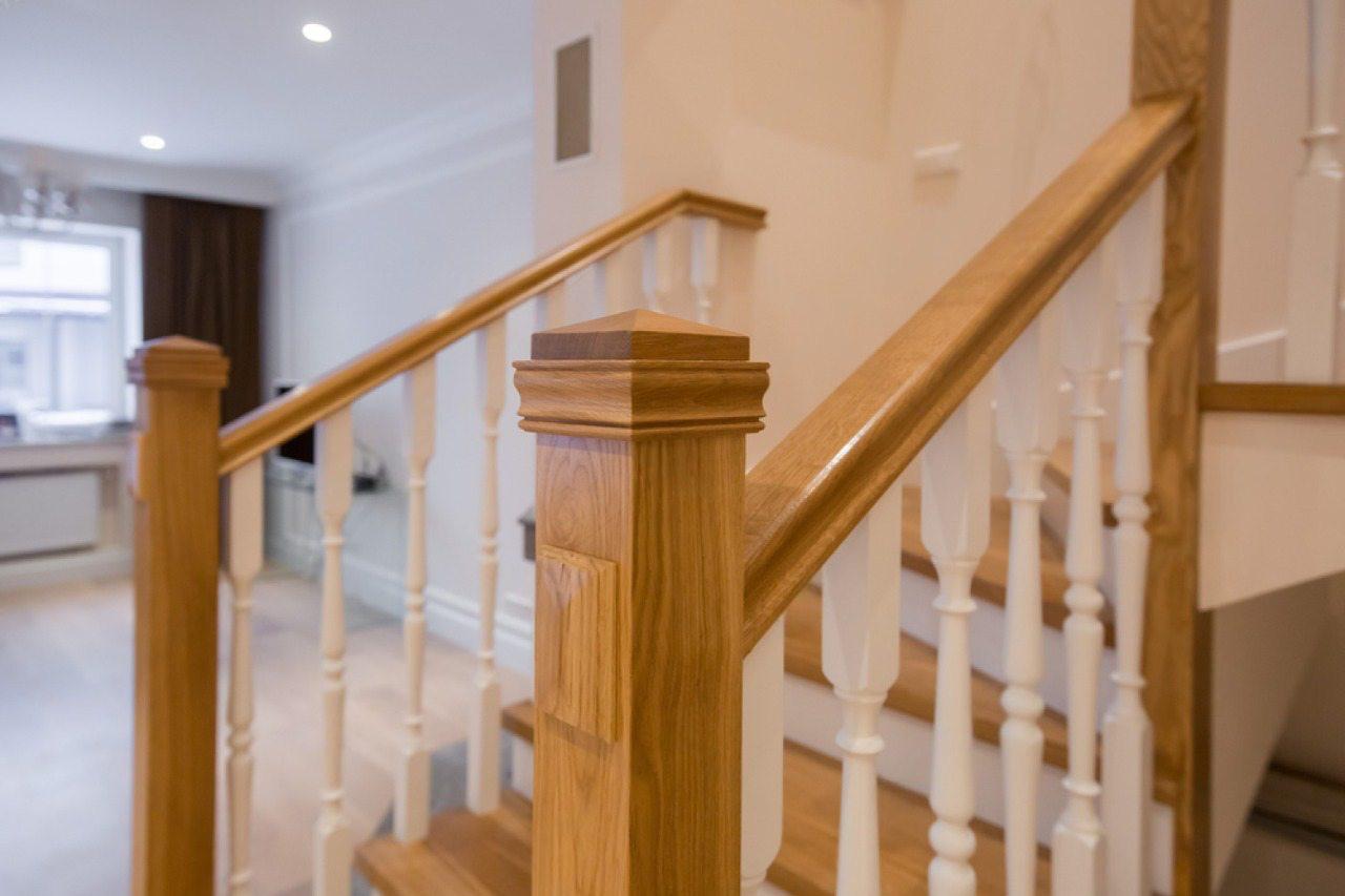 Теплый бук, классическое ограждение и мягкая подсветка